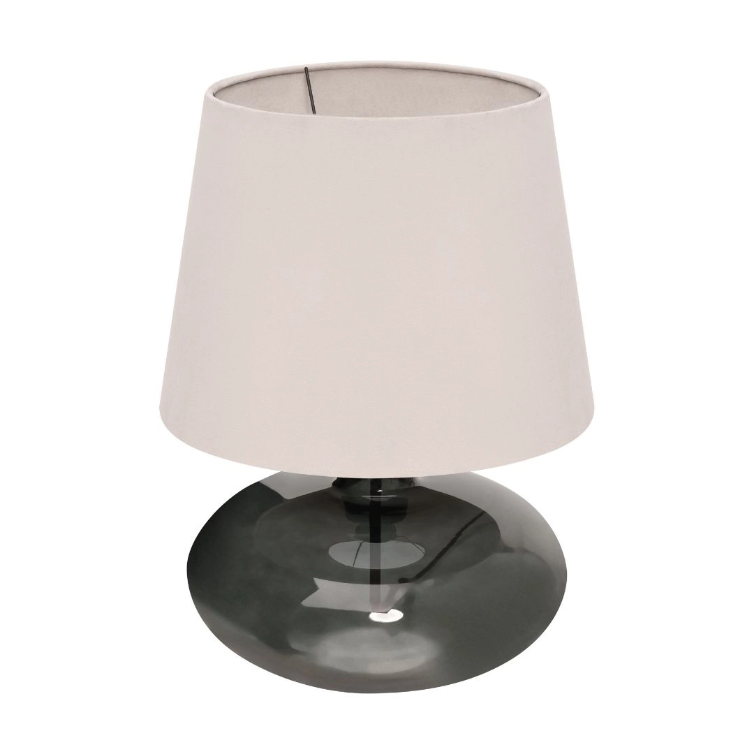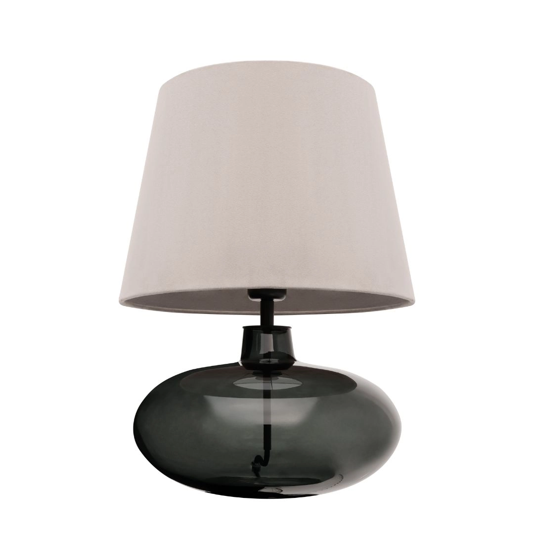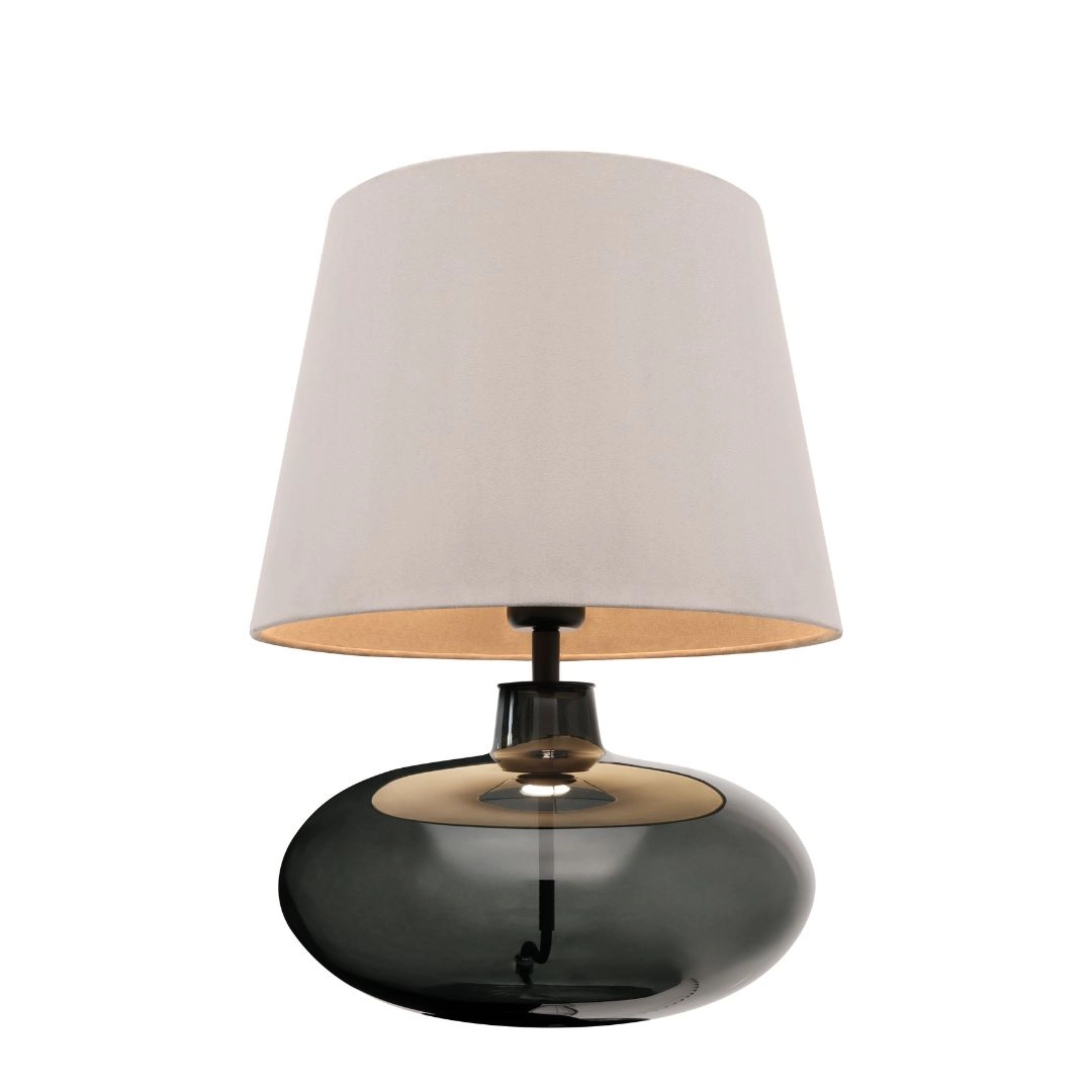 The shape of the lampshade and its warm beige color harmonize perfectly with the glass, smoky, transparent base of elliptical shape, bringing a moody atmosphere to interiors decorated in the spirit of modern elegance. Soft velour lampshade it also brilliantly breaks the austerity of minimalist arrangements, so if you feel you need a touch of warmth or a dash of color, this design will make your interior, working well both as a table lamp in a living room, library, study or hallway, as well as bedside lamp in the bedroom.