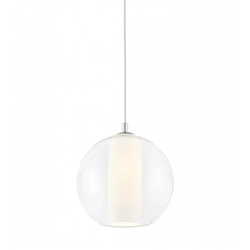 The collection includes single pendant lamps, as well as groups of lamps on a plafond or ceiling strip. All the lamps are united by a transparent glass spherical shade, a chrome finish and an inner lampshade tube, which gives each lamp a specific character.