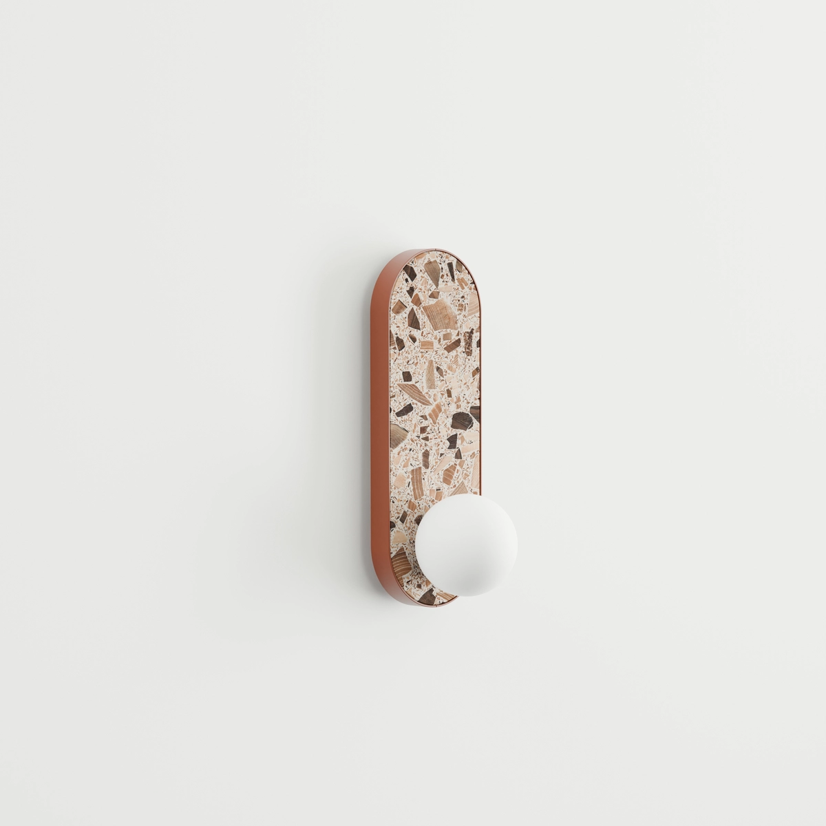 Z tej naturalnej bazy wyłania się kula światła ze szkła opalowego, która zapewnia miękkie, rozproszone światło. Każda kula wykonana jest ręcznie w hucie szkła w Krośnie, posiada gwintowaną, metalową konstrukcję i nakręcana jest bezpośrednio na oprawę. To rozwiązanie funkcjonalne i trwałe, wpisujące się w filozofię świadomego projektowania.