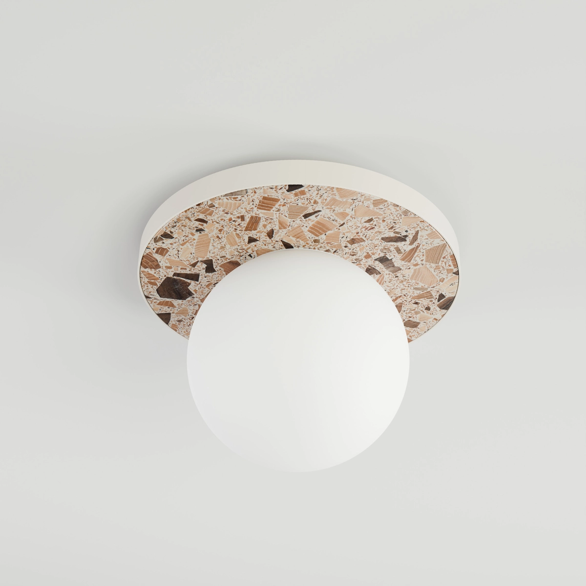 Основою всіх світильників колекції є унікальний тераццо "Full of Tradition" - матеріал, розроблений польською студією HANK, що спеціалізується на відповідальному дизайні. Цей тераццо виготовлений з фрагментів деревини, занурених у смолу: ясена, горіха та фруктових дерев. Кожен фрагмент був підібраний індивідуально, і в результаті вийшла благородна, унікальна мозаїка. Деревина не була прихована - навпаки, її поперечний переріз і візерунок повністю проглядаються і стають невід'ємною частиною композиції.