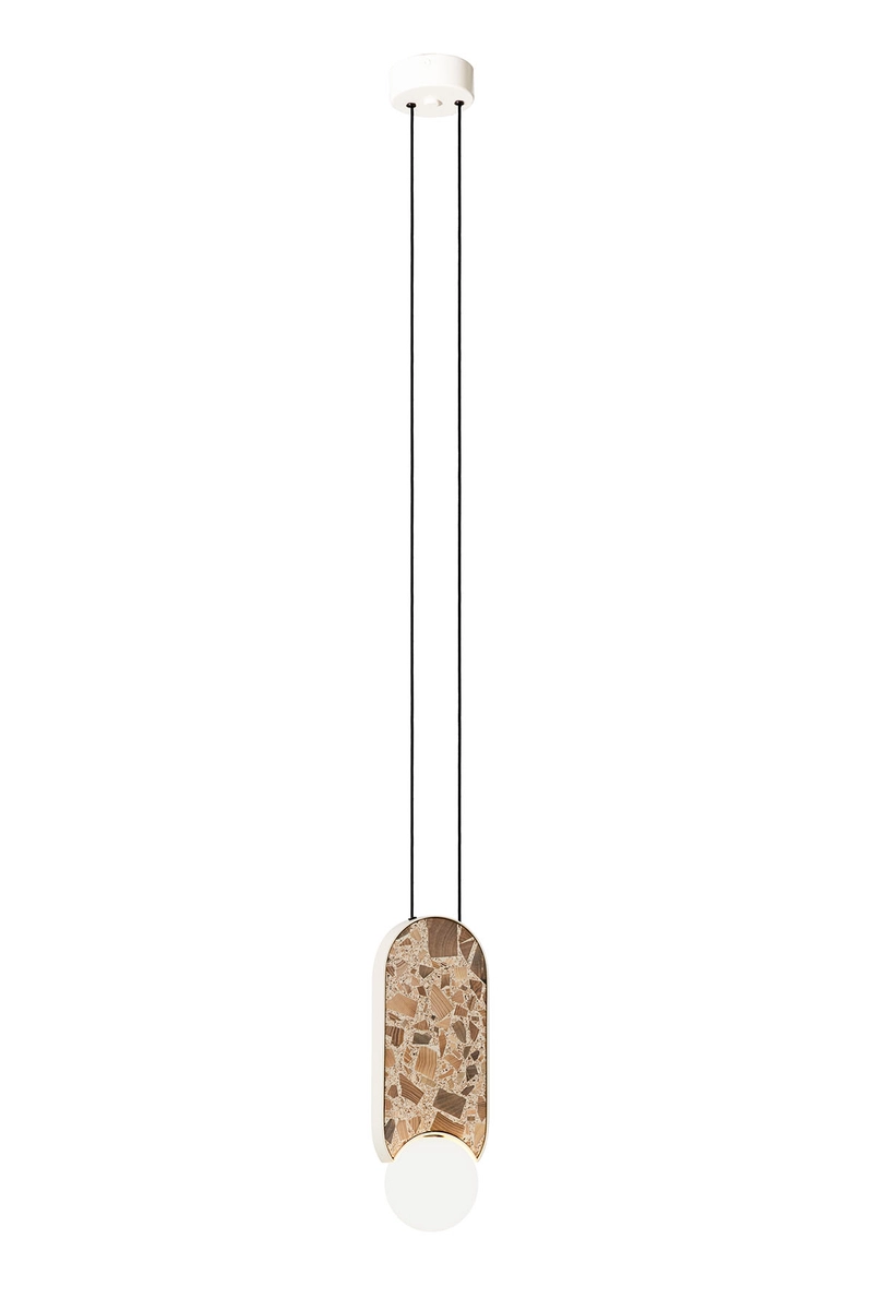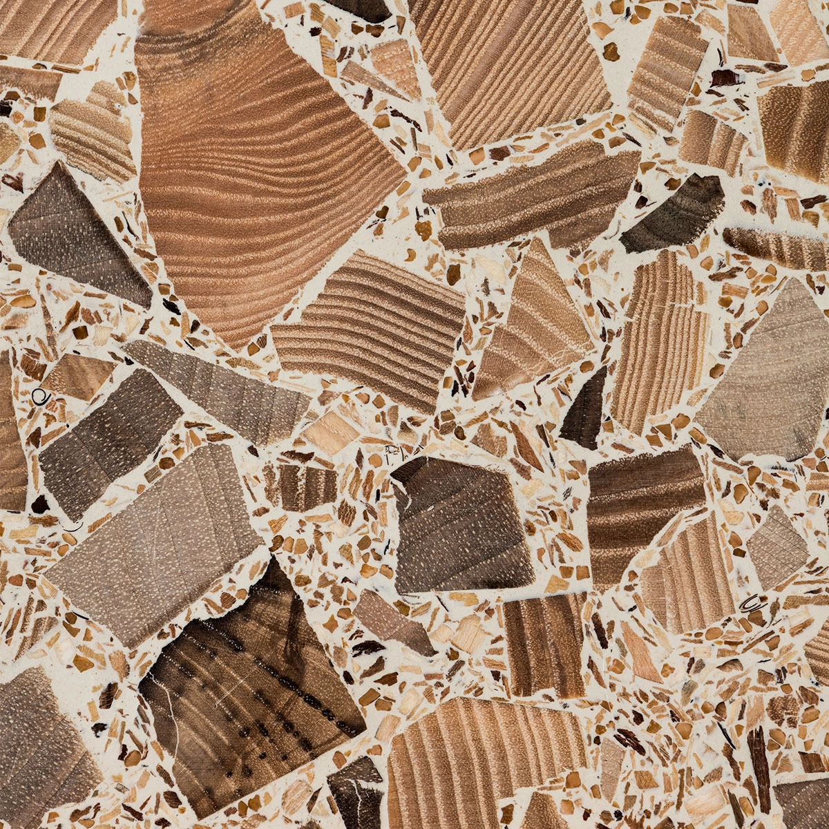 Основою всіх світильників колекції є унікальний тераццо "Full of Tradition" - матеріал, розроблений польською студією HANK, що спеціалізується на відповідальному дизайні. Цей тераццо виготовлений з фрагментів деревини, занурених у смолу: ясена, горіха та фруктових дерев. Кожен фрагмент був підібраний індивідуально, і в результаті вийшла благородна, унікальна мозаїка. Деревина не була прихована - навпаки, її поперечний переріз і візерунок повністю проглядаються і стають невід'ємною частиною композиції.
