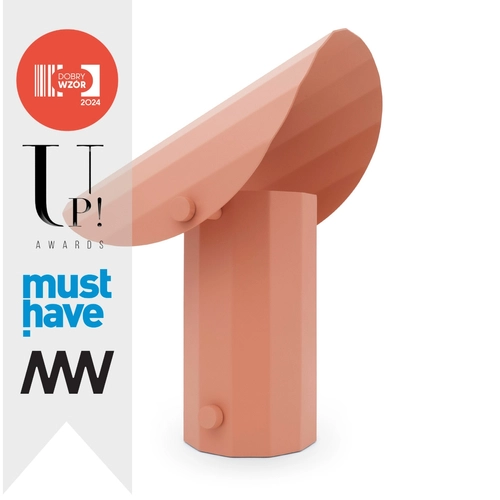 Настільна лампа Apolin проект Grynasz Studio це виготовлений з металу настільний світильник, натхненний дизайнами, створеними на польських металургійних заводах MEOS та ZAOS у 1950-70-х роках. Лампа з розмірами 30 x 30 x 11,5 см і потужністю світлодіодів 9 Вт - більша з двох доступних версій - характеризується рухомим гранованим навісом і основою, виготовленою з виготовлений з профільованої нержавіючої сталі з порошковим покриттям товщиною 1,5 мм з матовим покриттям у красивому ніжно-рожевому кольорі.