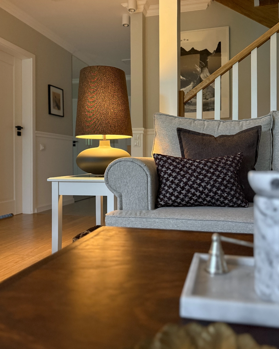 Завдяки класичній формі та широкій гамі кольорів абажура, настільна лампа Sawa впишеться як в інтер'єр, так і в елегантні інтер'єри з приглушеним, класичним виглядом, а також сучасні та строгі.