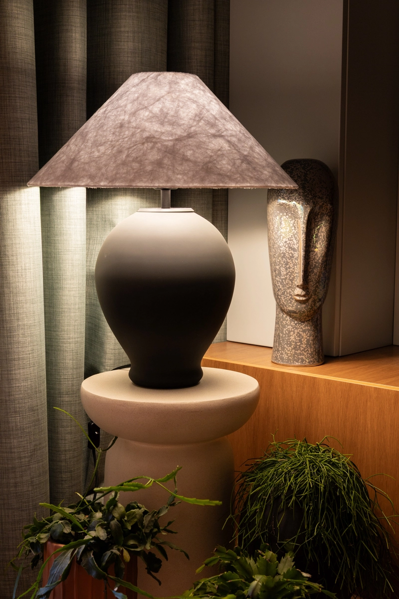 Duża, wyrazista i doskonale zbalansowana - lampa stołowa CLARA została zaprojektowana jako centralny punkt aranżacji. Jej ręcznie dmuchana, matowa szklana podstawa w kształcie amfory przyciąga uwagę i nadaje wnętrzu charakteru, a szeroki abażur zapewnia miękkie, przyjemne światło.